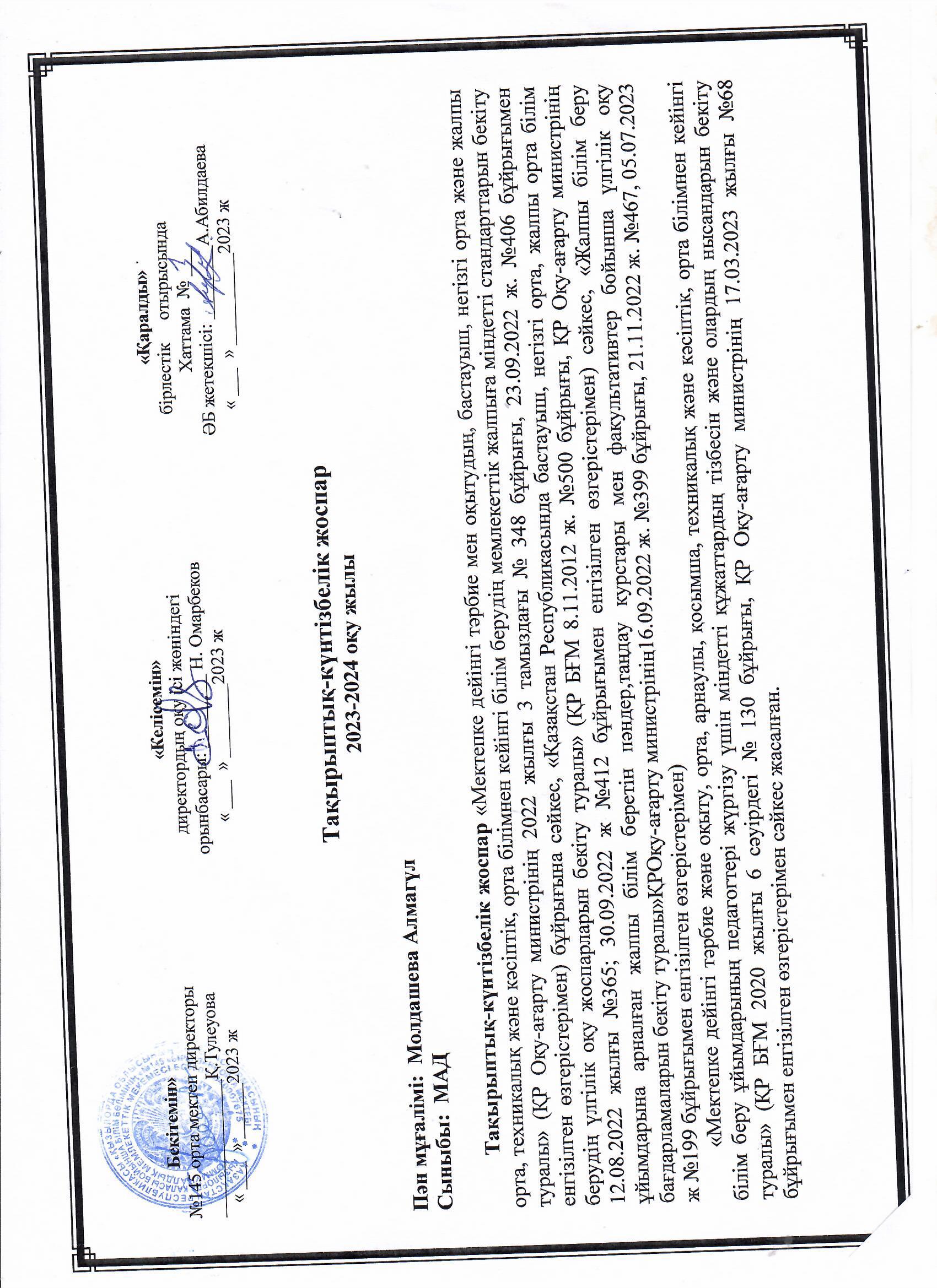 Сабақ кестесі 2023-2024